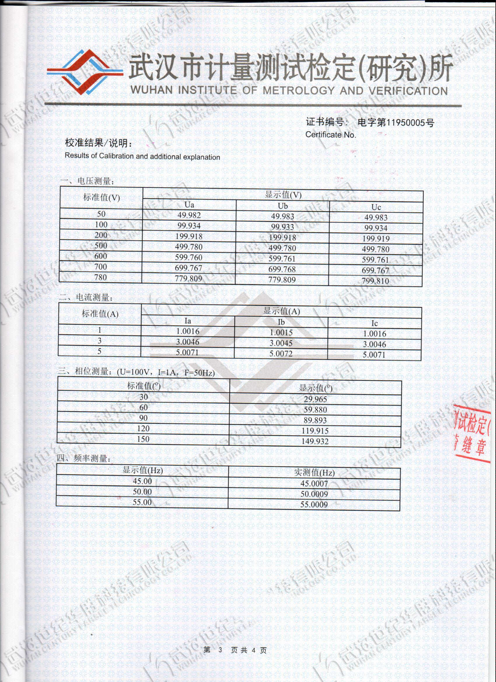 頻率測(cè)量范圍:45~55Hz
